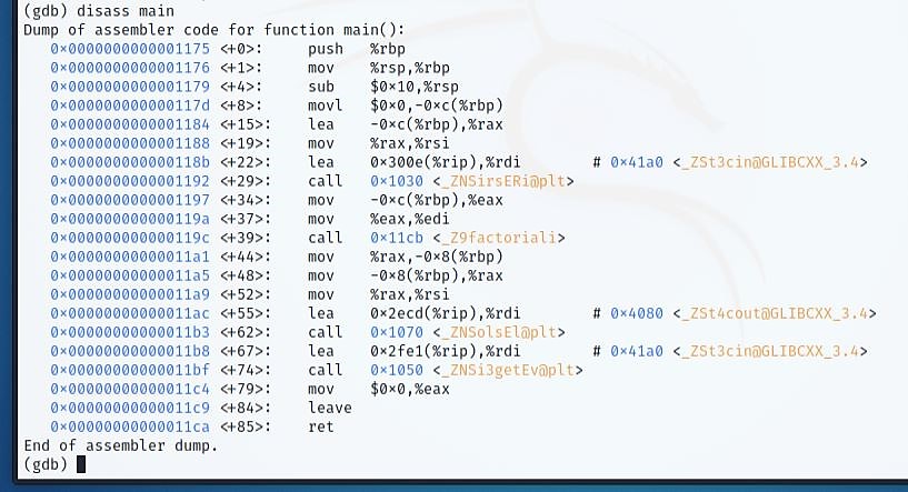Use the "disass" command to output the list of Assembly instructions. GDB's default disassembly style is AT&T, which might perplex Windows users as this style is for Linux. If you don’t prefer this, the disassembly style can be re-set as well.