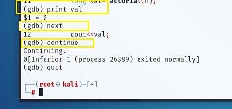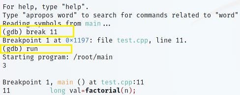 We took an example of C++ code and tried a few things with GDB. But if you want to explore it further, use the "help" option in the "(gdb) interface."