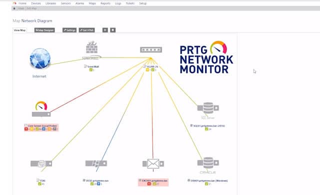 Paessler PRTG Network Monitor uses the Simple Network Management Protocol (SNMP) to locate all of the devices on your network and provide real-time monitoring capabilities. Once each piece of equipment has been discovered, it is logged in an inventory. The inventory forms the basis of the PRTG Network Map. You can reorganize the map manually if you like and you can also specify customized layouts. The maps aren’t limited to displaying the devices on one site. It can show all of the devices on a WAN and even plot all of the company’s sites on a real map of the world. Cloud services are also included in the network map.