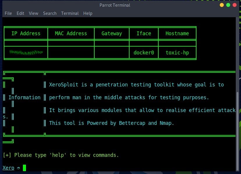 Xerosploit is a tool used by penetration testers to perform man in the middle attacks for the purpose of testing. It utilizes features found within the nmap and bettercap to carry out the attacks. These features include, Denial of Service and port scanning. Some of the features found within xerosploit include;