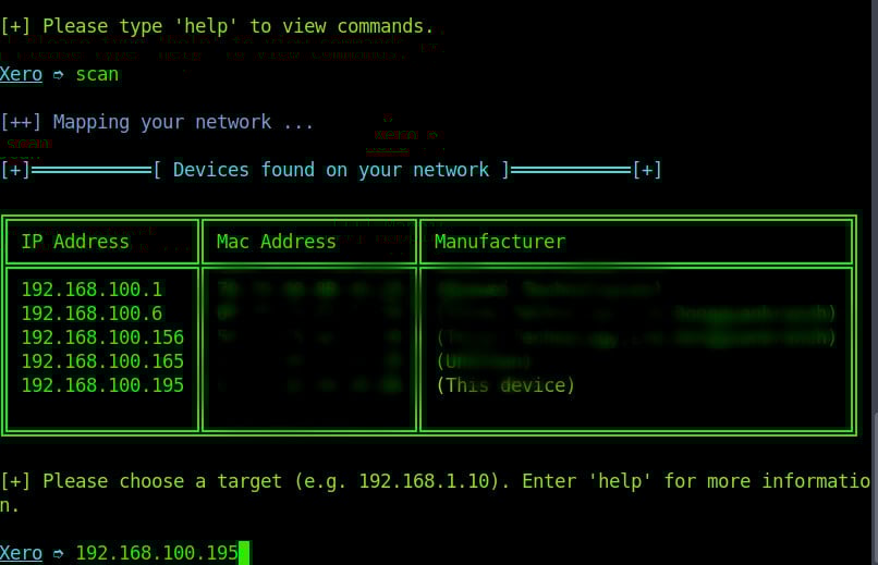 When scan is complete we are choose the target device on the network. You enter the targetβs local IP address and press enter.