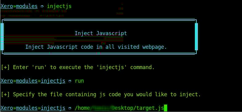 Another attack which can be performed is injecting JavaScript code to a insecure website. Injecting JavaScript code can be used maliciously to ask for userβs personal details or perform other kinds of attacks. To run this kind of an attack is almost similar to replacing images, only that on this attack you specify the location of your JavaScript file instead.