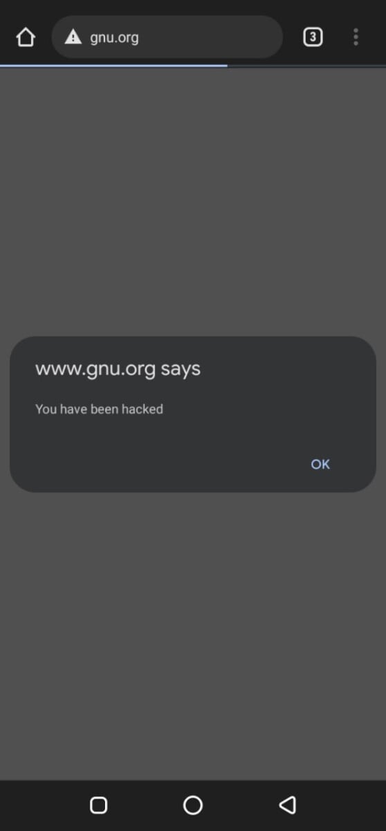 We injected a JavaScript file with an alert to the user as shown on the image below.